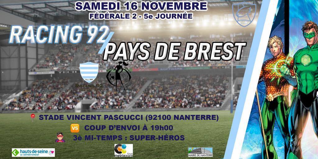 Match à 19:00 opposant le Racing Nanterre Rubgy à Pays de Brest